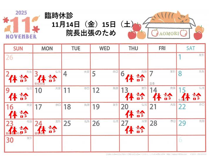 11月3日(月)24日(月)は祝日の為、日曜と合わせて連休になります。ご注意ください。
