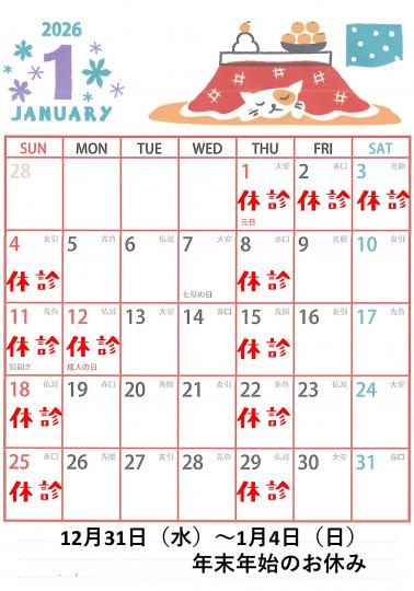 年末年始はお休みの病院も多いので、体調が悪そうな場合は早めに受診をしてくださいね。