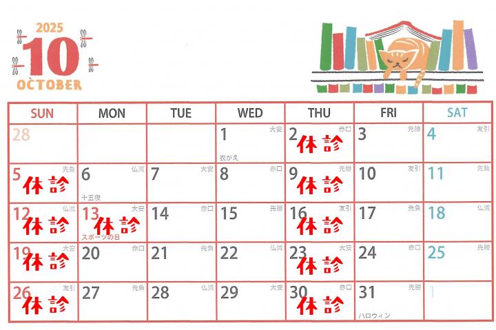 10月は臨時休診の予定はありません。