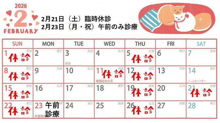 2月は臨時休診の予定はありません。